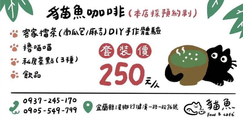 "客家擂茶(南瓜包/麻吉)DIY手作體驗、擼喵喵、私房茶點(3種)、飲品 套裝價250元/人"